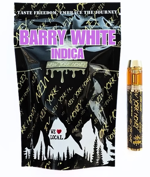 The wait is over! Introducing the ALL NEW AIO from New York Honey! Barry White is an indica-dominant hybrid strain, a cross between Blueberry and White Widow. It features sweet berry, fresh pine, and earthy undertones, delivering relaxing and euphoric effects.
